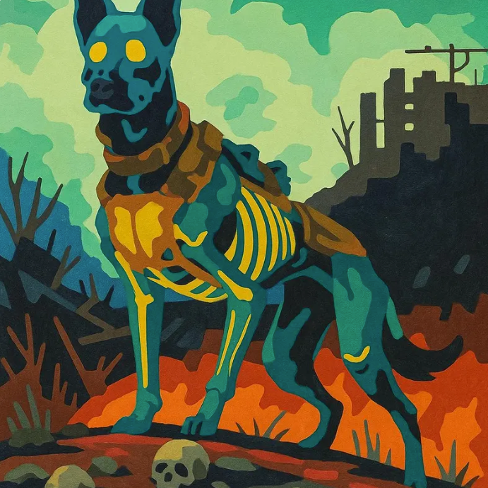Step into a dystopian world of color with this Skeleton Dog Paint by Number Kit! Designed in a glow-in-the-dark style, this eerie canine stands boldly against a ruined cityscape, with stylized bones, glowing eyes, and cyberpunk tones. A must-have for fans of sci-fi, fantasy, and post-apocalyptic aesthetics.