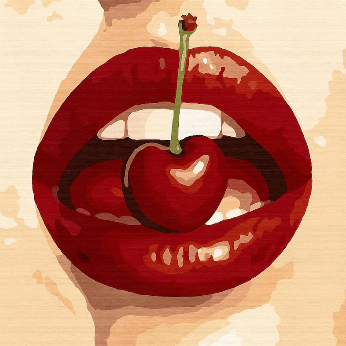 🍒 Make a statement with this Cherry Lips Paint by Number Kit! Featuring luscious red lips sensually holding a cherry, this bold and seductive design blends classic pin-up vibes with modern pop art style, creating a captivating piece that’s perfect for contemporary spaces.