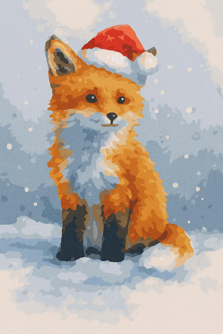 Bring warmth and cheer to your holidays with this Paint By Number “Festive Fox”. A sweet little fox wearing a Santa hat in the snow — cozy, cute, and the perfect winter art project. ❄️🎄