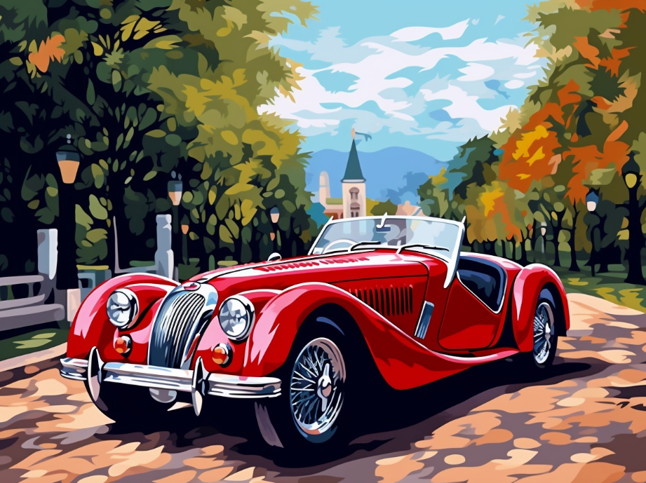 Celebrate the golden age of motoring with this Classic Red Cars Paint by Number Kit! Featuring four iconic vintage convertibles set against scenic countryside and European roads, this retro-style art kit is perfect for classic car lovers and anyone who enjoys nostalgia and creativity.
