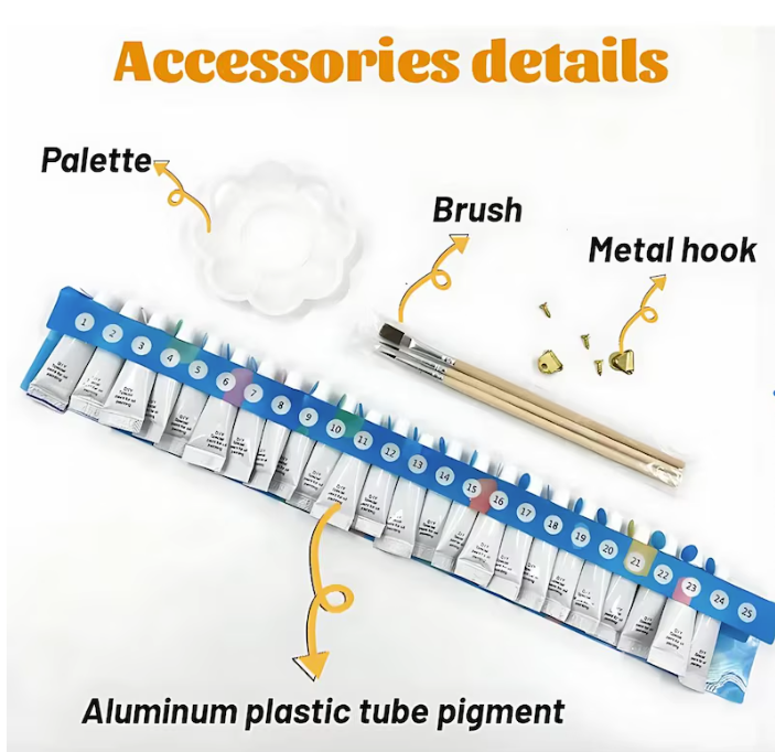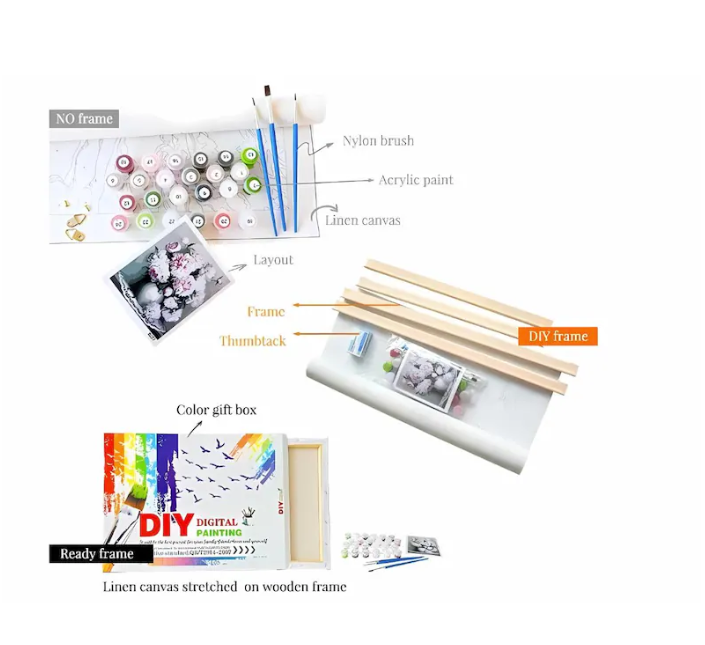 – Numbered acrylic-based paint set. No mixing is required. Non-toxic and environmentally friendly.