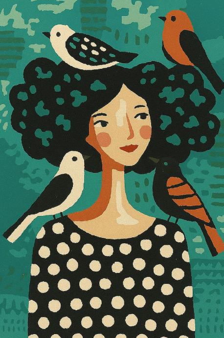 Bring joy and charm to your space with this delightful Paint by Number Kit featuring a whimsical portrait of a woman with birds perched in her curly hair. Dressed in a retro polka dot top, surrounded by colorful feathered friends, this unique artwork invites creativity and calm